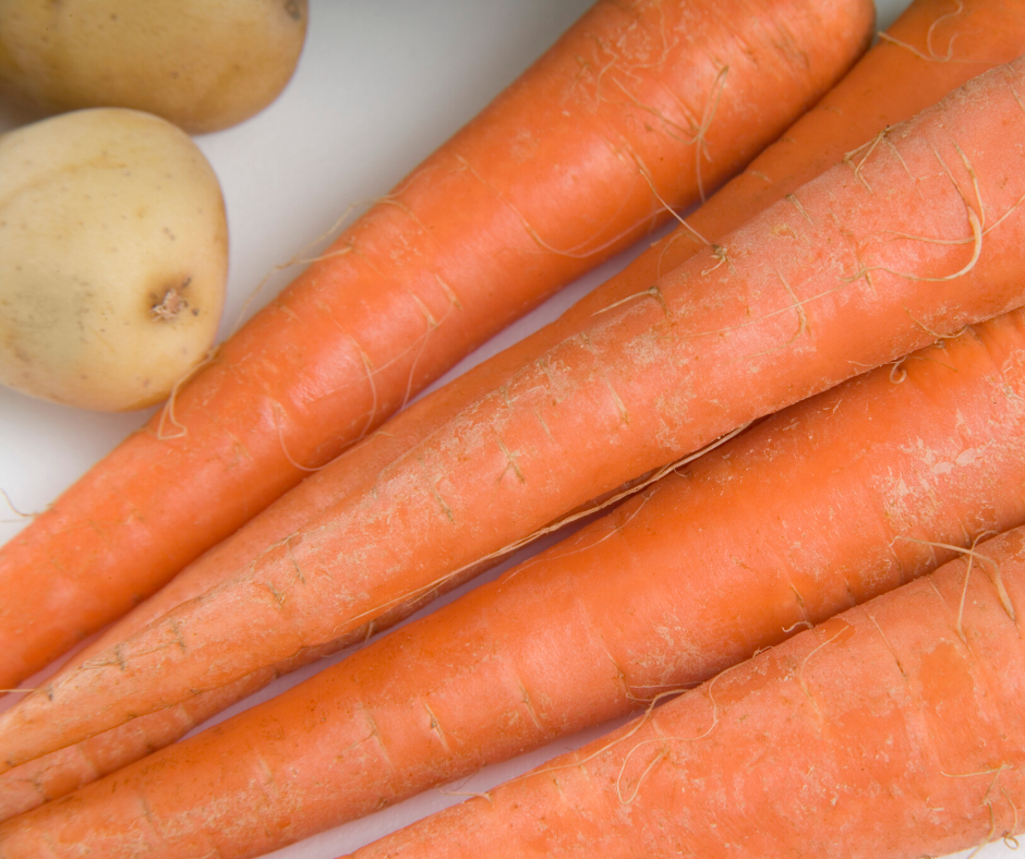 3. In a large bowl toss together the baby potatoes, carrots, onions, garlic, salt and pepper and olive oil until everything is coated